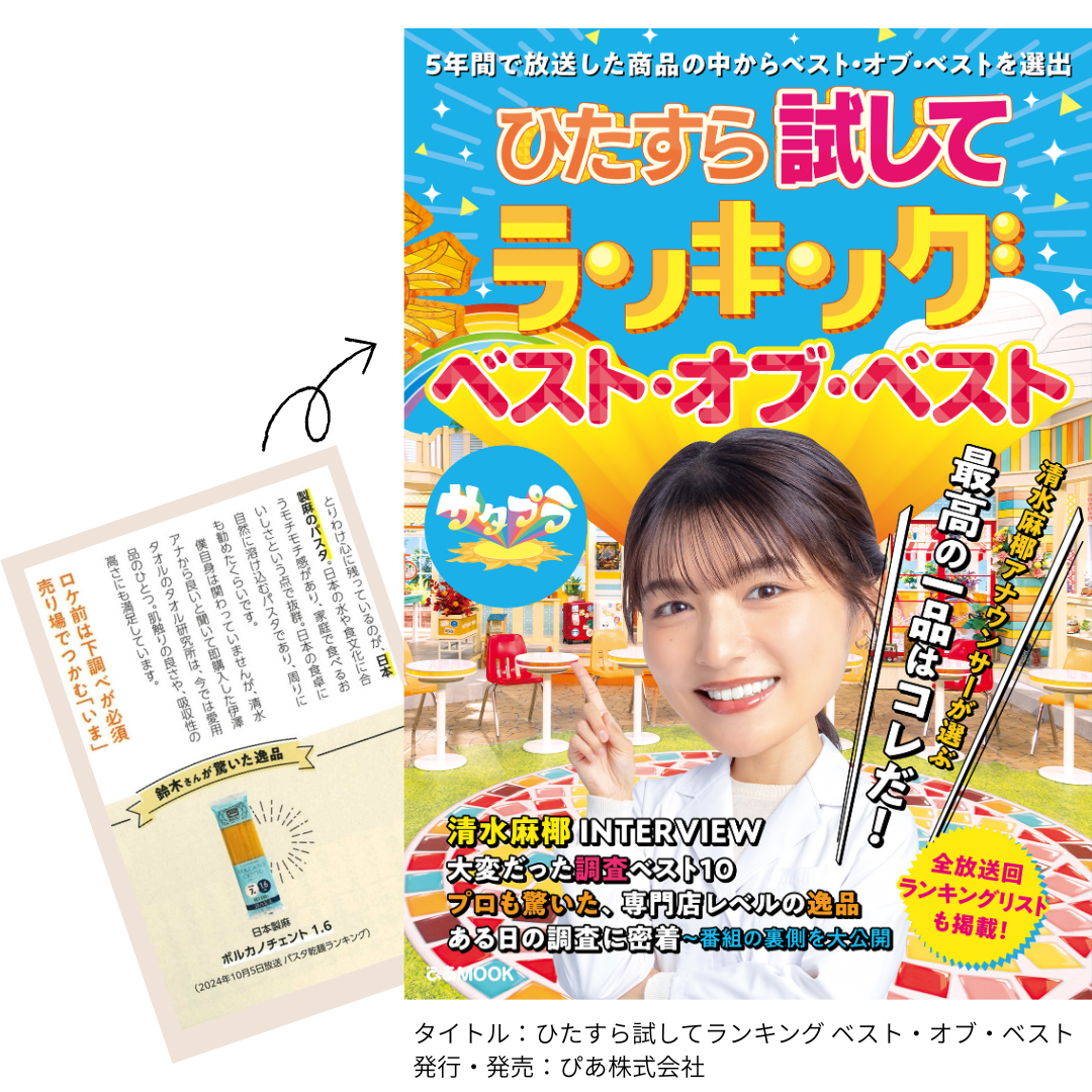 この度、MBS/TBS系列「サタプラ」の大人気コーナー「ひたすら試してランキング」の公式MOOK『ひたすら試してランキング ベスト・オブ・ベスト』に、当社商品「ボルカノチェント 1.6」が掲載されました。